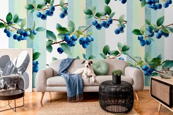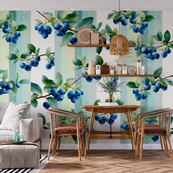Fotobehang bosbessentrossen op een gestreepte achtergrond N° w04307
