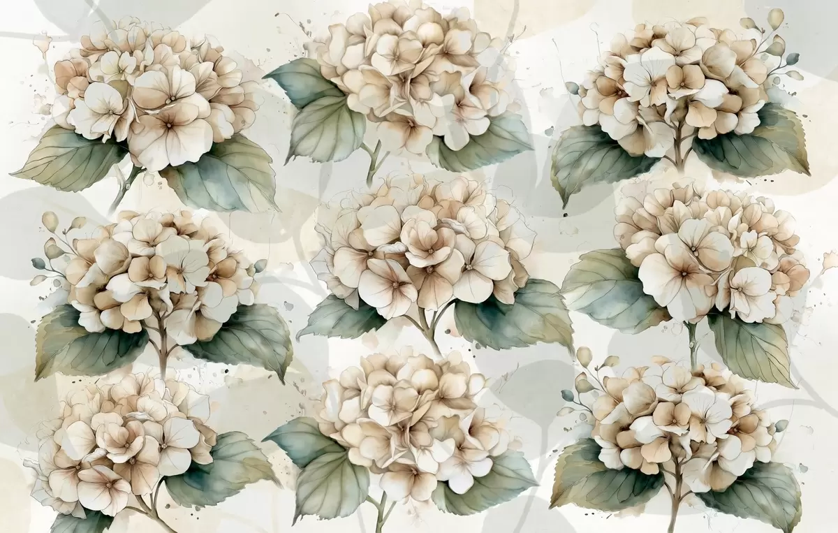 Fotobehang grote hortensia's in aquarelstijl N° w04312