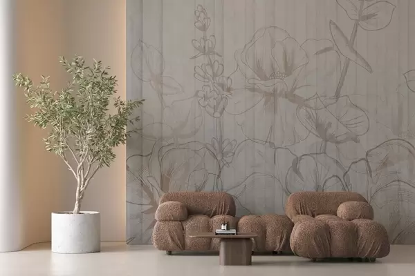 Fotobehang Silhouetten van planten op een betonnen achtergrond N° w04327