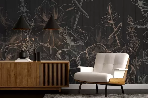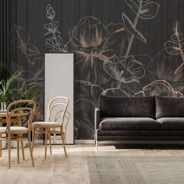 Fotobehang Silhouetten van planten op een betonnen achtergrond N° w04327v2
