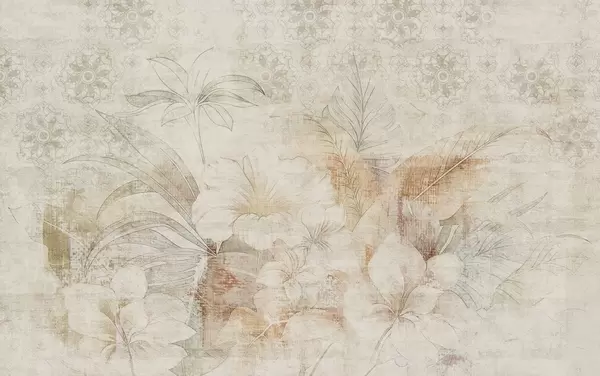 Fotobehang Bloemen en bladeren op gestructureerde achtergrond met ornamenten N° w04343