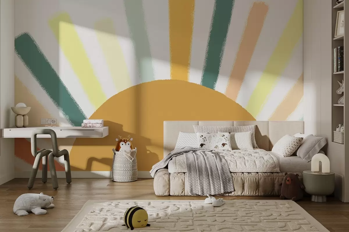 Fotobehang Abstracte zon met gekleurde stralen N° w04352