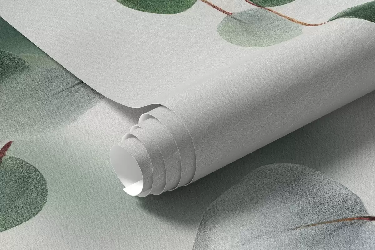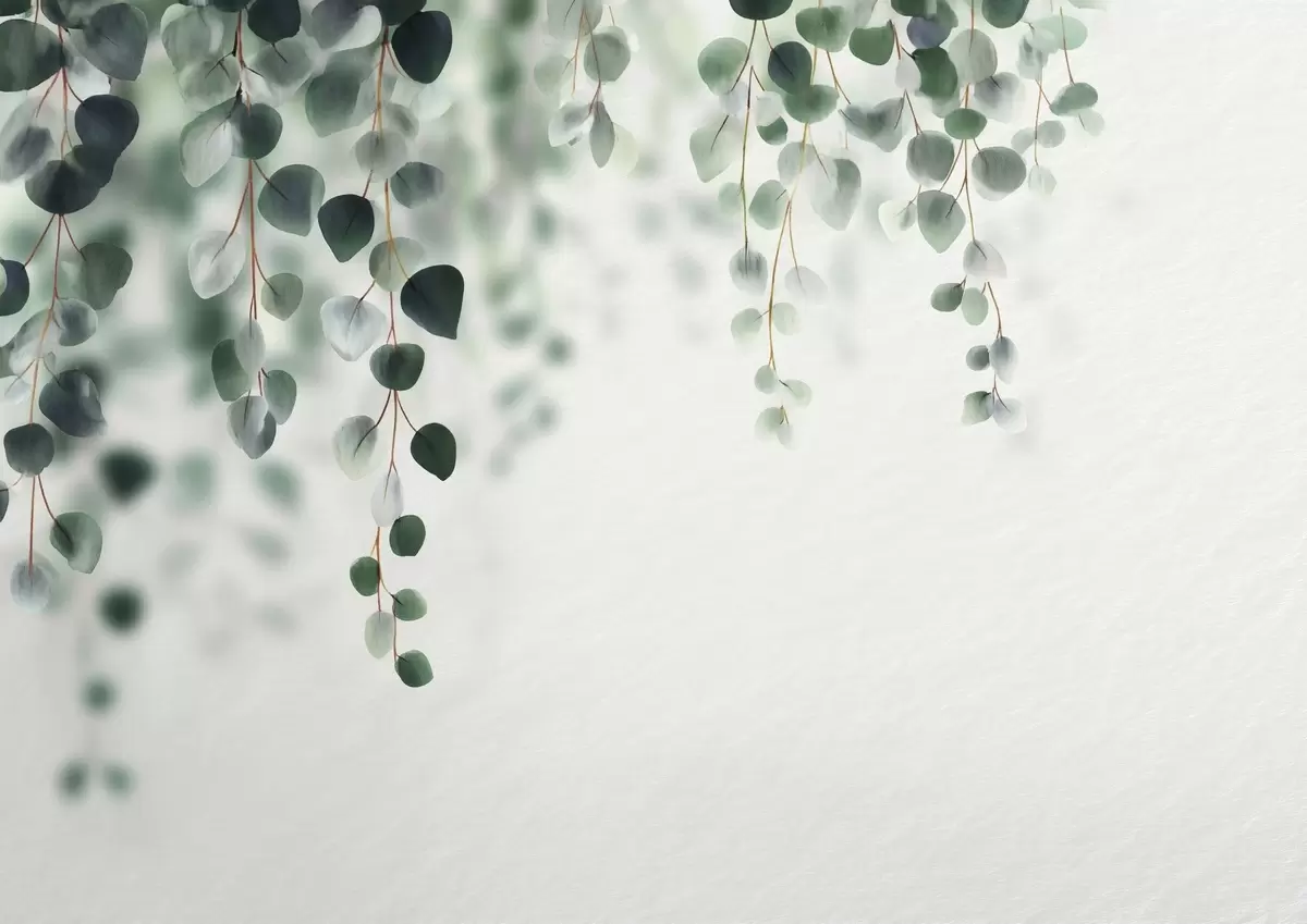 Fotobehang Vallende eucalyptus op een lichte achtergrond N° w04393