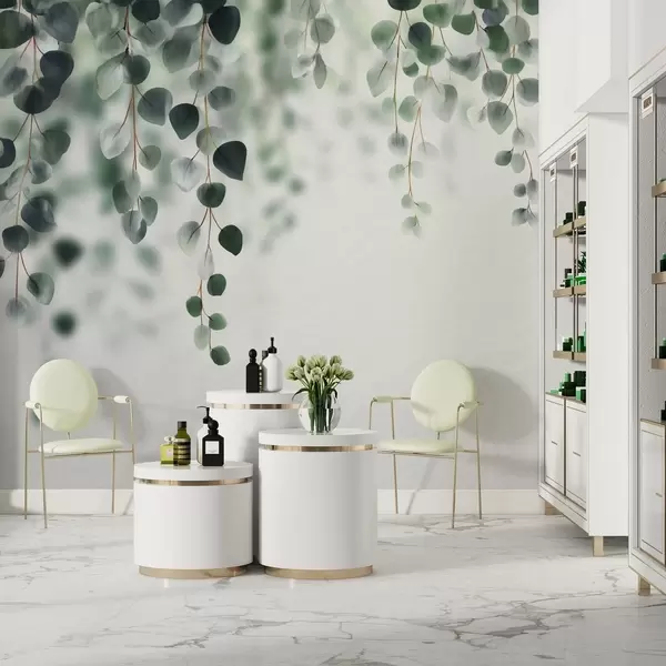 Fotobehang Vallende eucalyptus op een lichte achtergrond N° w04393