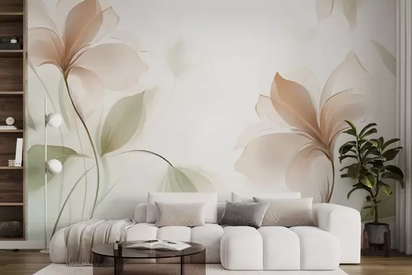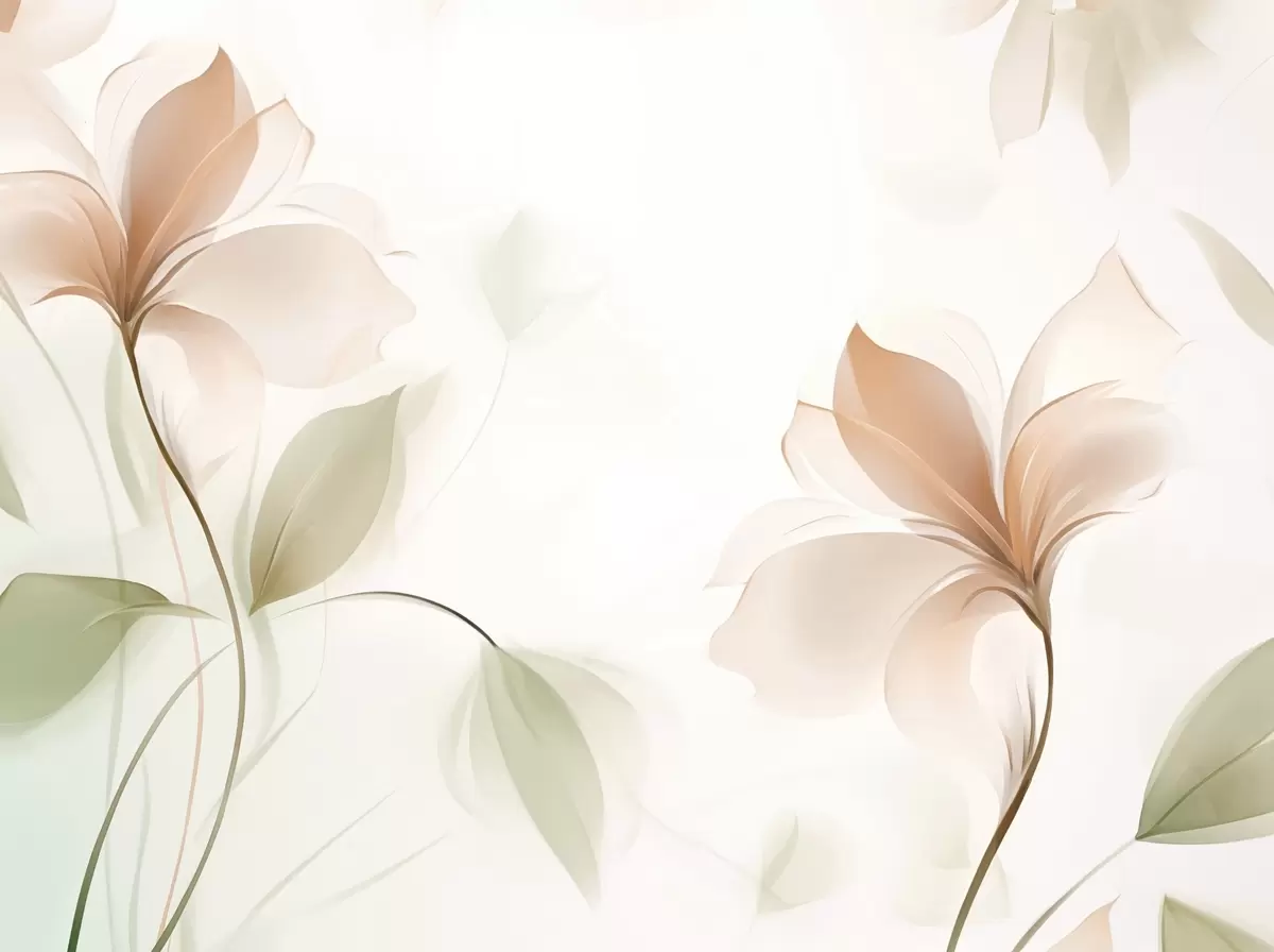 Fotobehang Transparante bloemen in warme beige en roze tinten N° w04397