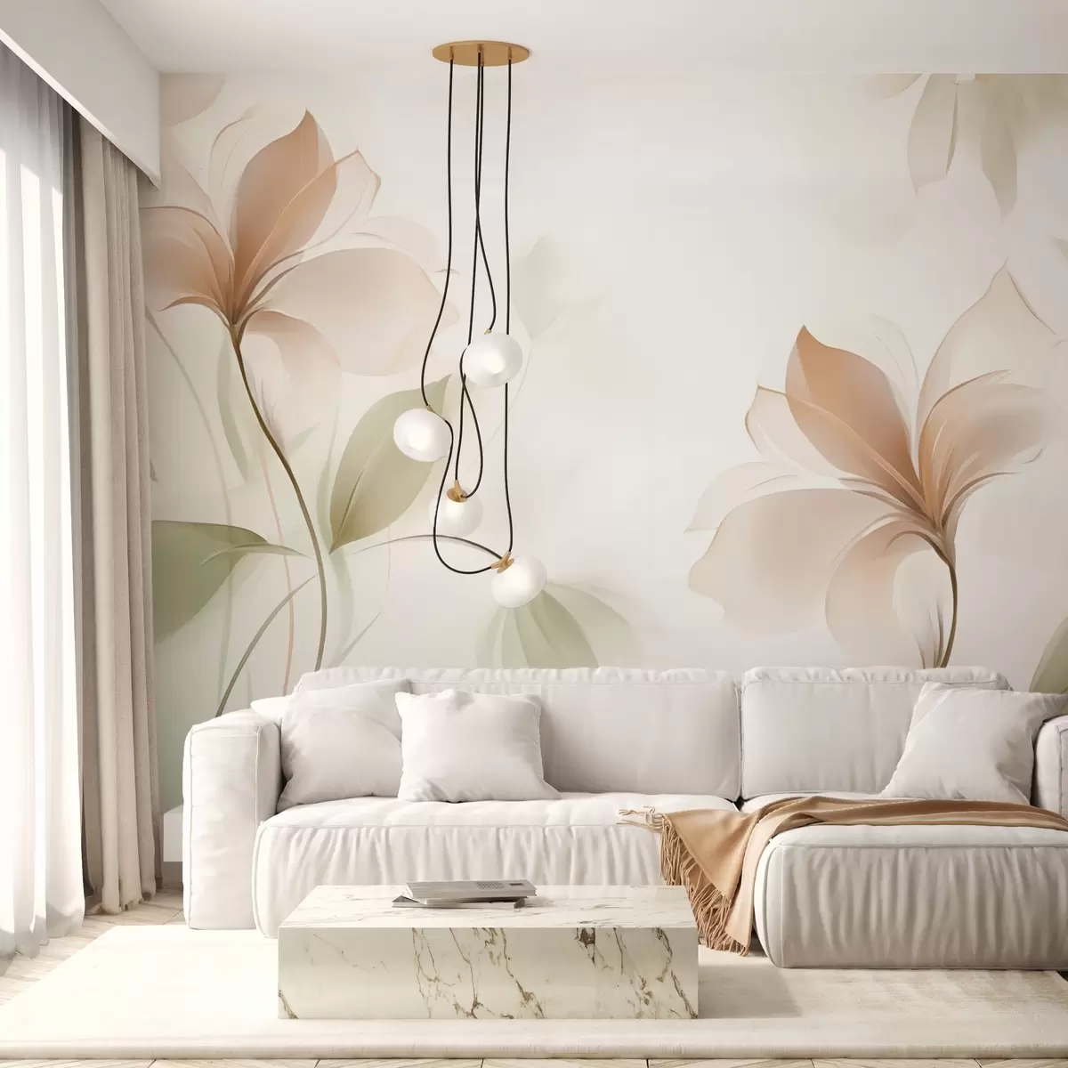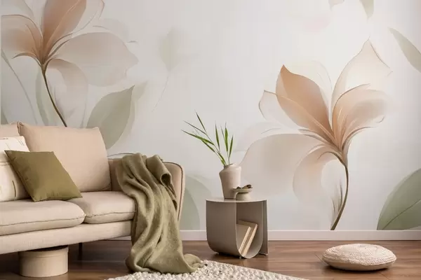 Fotobehang Transparante bloemen in warme beige en roze tinten N° w04397