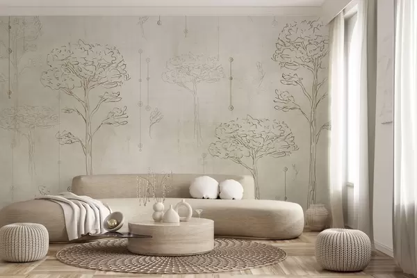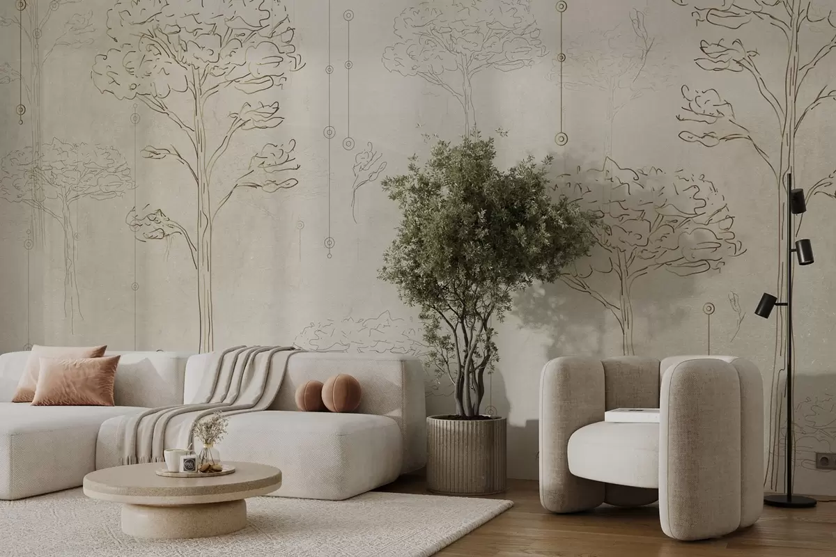 Fotobehang Lineaire silhouetten van bomen in minimalistische stijl N° w04403