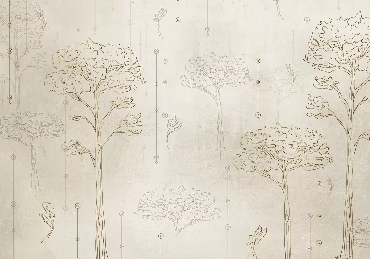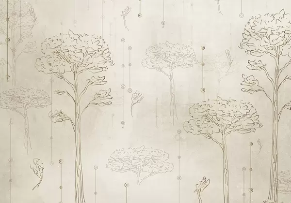 Fotobehang Lineaire silhouetten van bomen in minimalistische stijl N° w04403