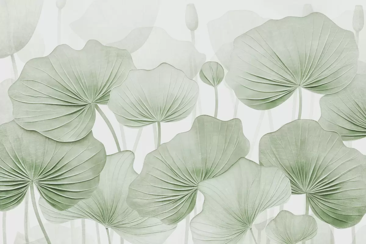Fotobehang Lotusbladeren met imitatie verweerde textuur N° w04412