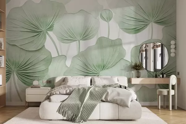 Fotobehang Lotusbladeren met imitatie verweerde textuur N° w04412
