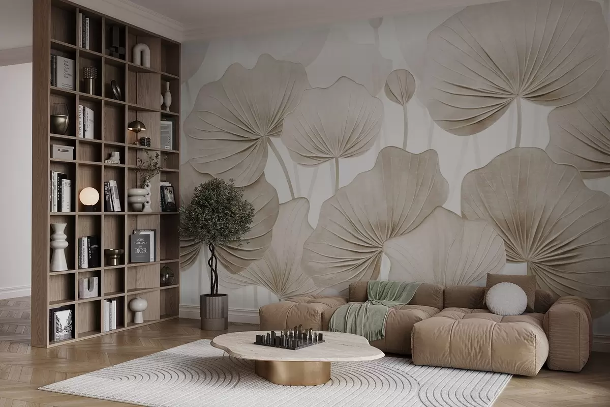Fotobehang Lotusbladeren met imitatie verweerde textuur N° w04412v1