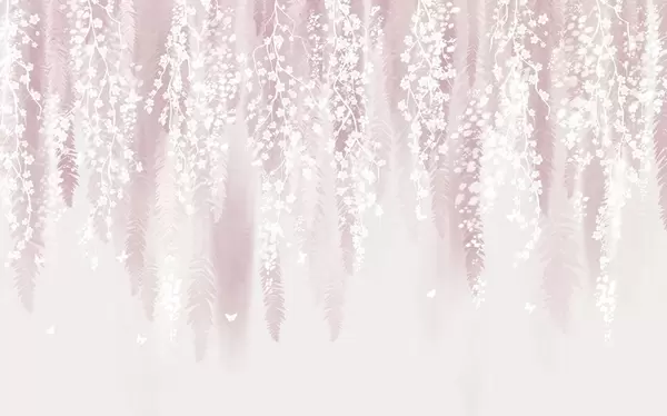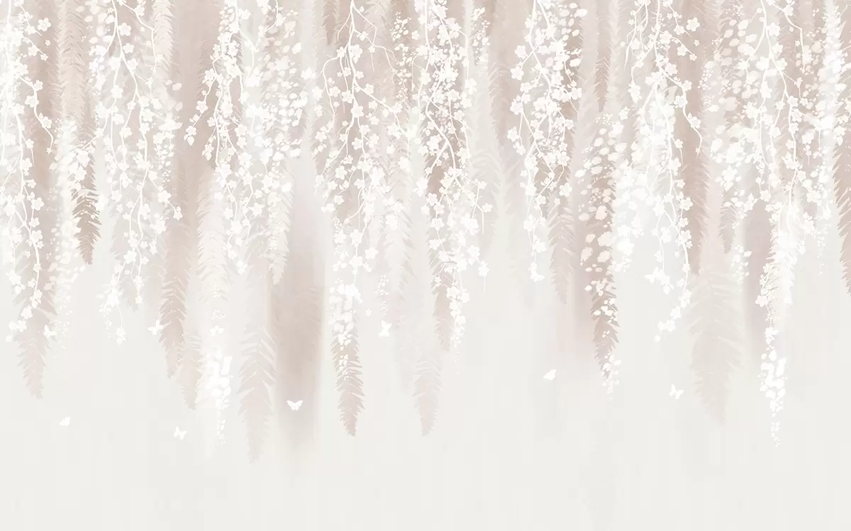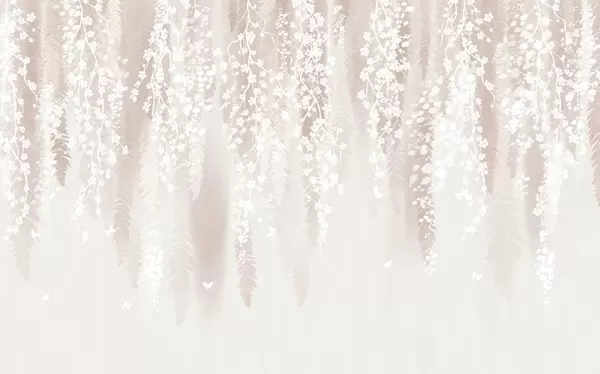 Fotobehang Lichte takken met witte bloemen op een zachte achtergrond N° w04417