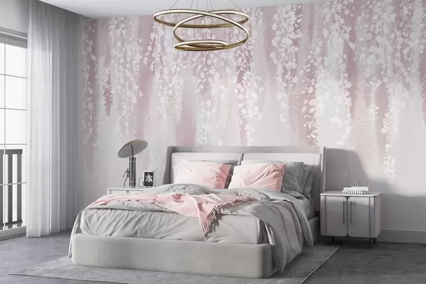 Fotobehang Roze versie van takken met witte bloemen N° w04417v1