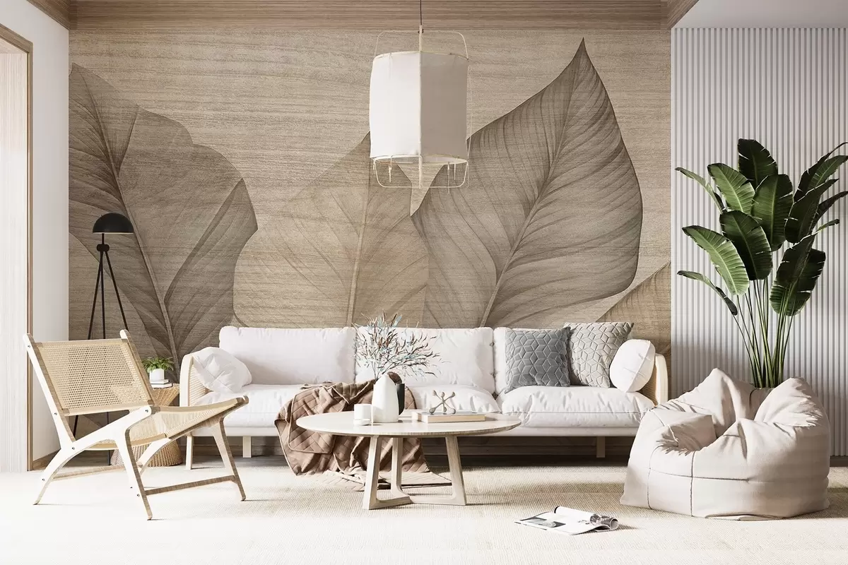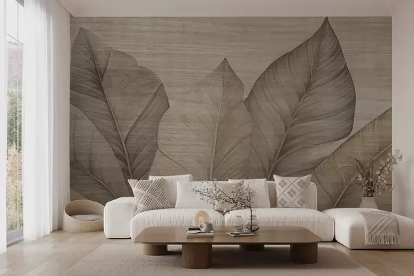 Fotobehang Scherpe bladeren met overlay-textuur N° w04438