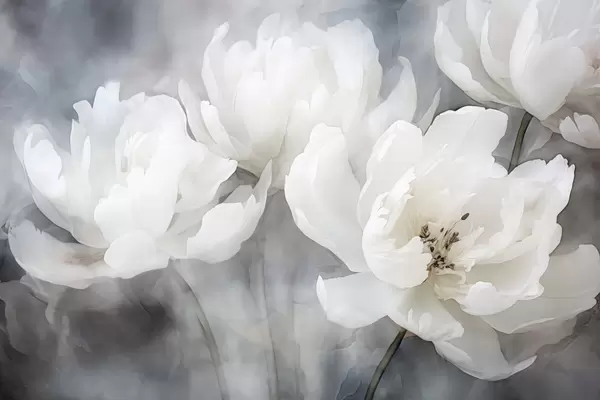 Fotobehang Witte bloemen op een mistige, delicate achtergrond N° w04441