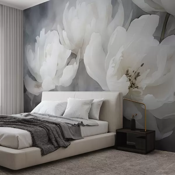 Fotobehang Witte bloemen op een mistige, delicate achtergrond N° w04441