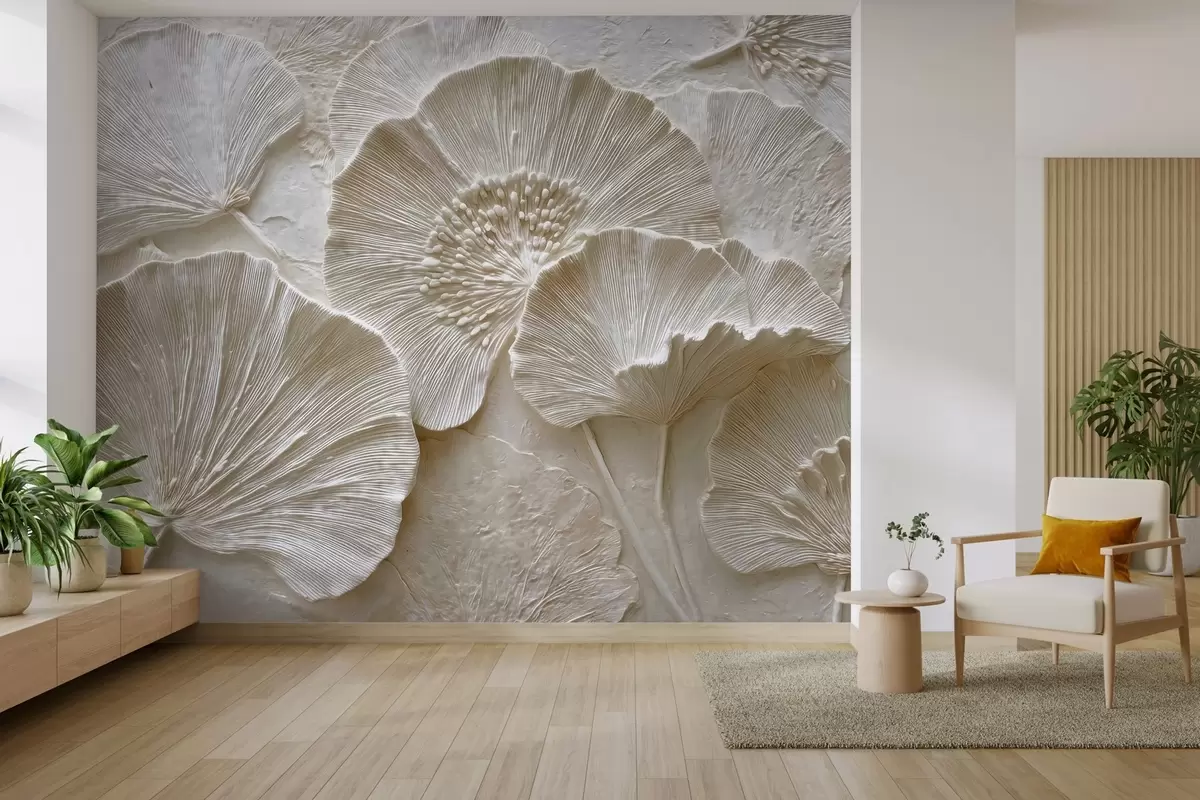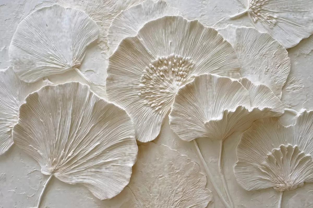 Fotobehang Volumineuze ginkgobladeren in een lichte reliëfstijl N° w04444