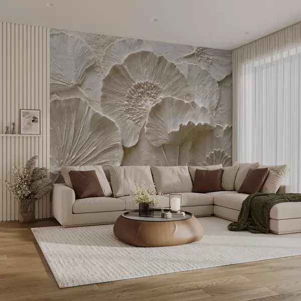 Fotobehang Volumineuze ginkgobladeren in een lichte reliëfstijl N° w04444