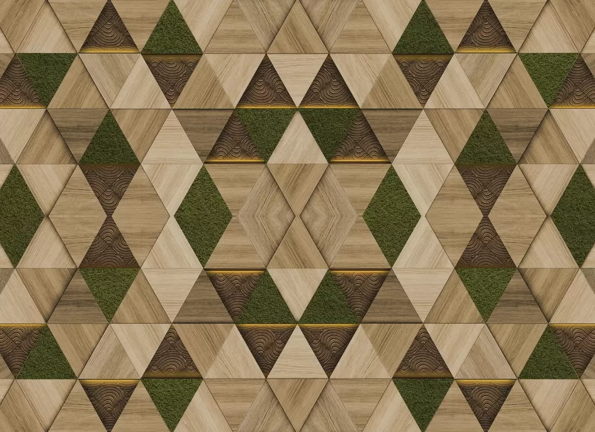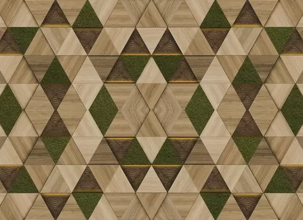 Fotobehang Geometrisch houten ornament met mos N° w04459