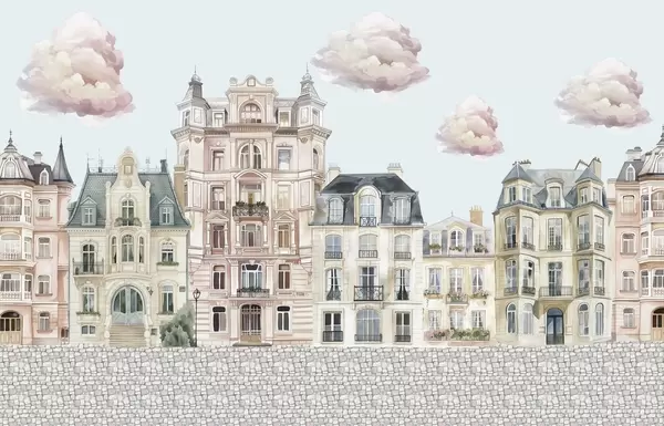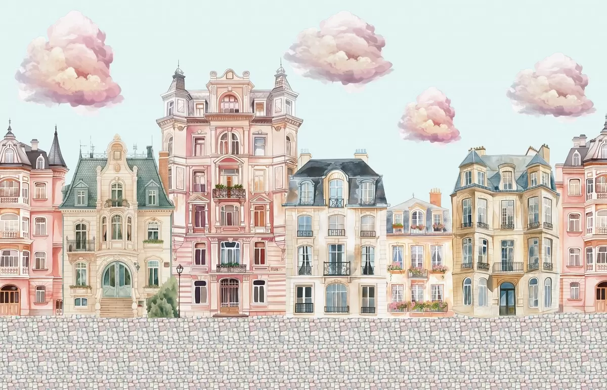 Fotobehang Kleurrijke huizen, wolken N° w04474
