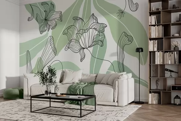 Fotobehang abstracte bladeren en bloemen in groene tinten N° w04499v1