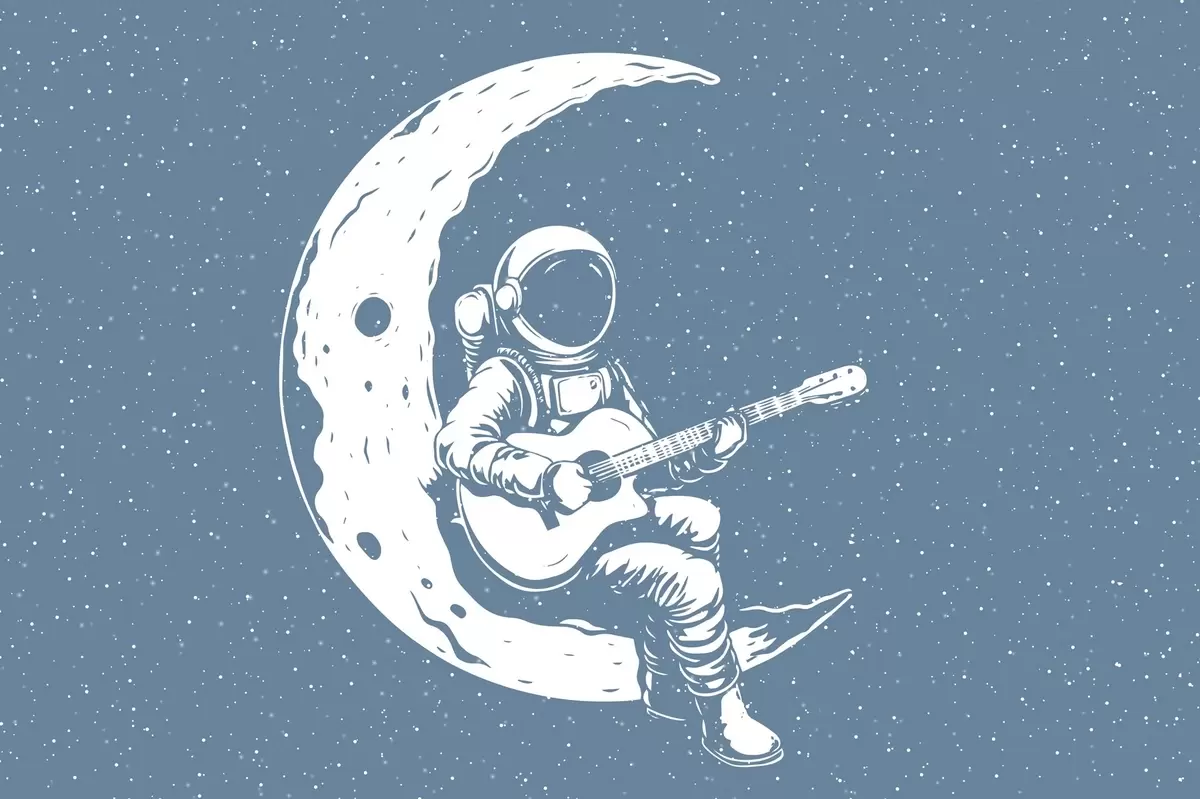 Fotobehang Kosmonaut, maan, gitaar N° w04514v2