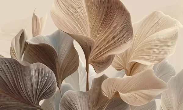 Fotobehang Elegante bladeren in warme beigetinten N° w04549v1