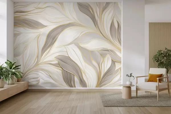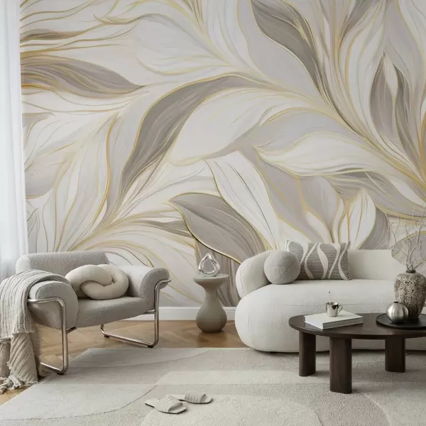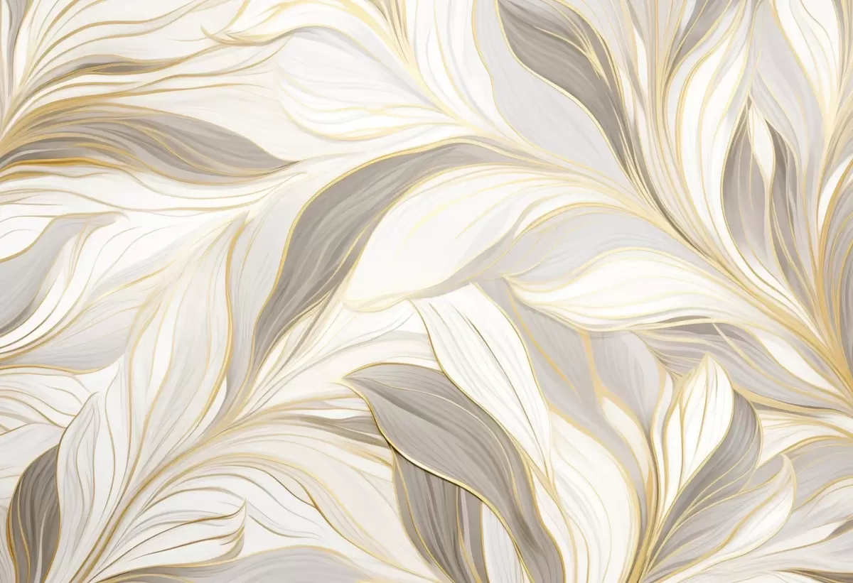 Fotobehang Bladeren met vloeiende rondingen in lichtbeige-grijze tinten N° w04609