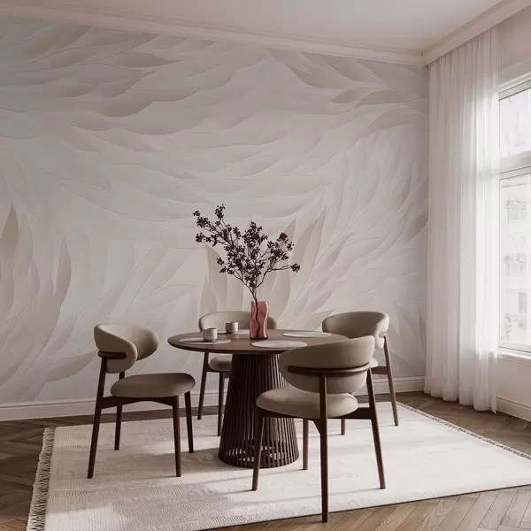 Fotobehang Golvende bladeren in zachte crèmekleuren N° w04610