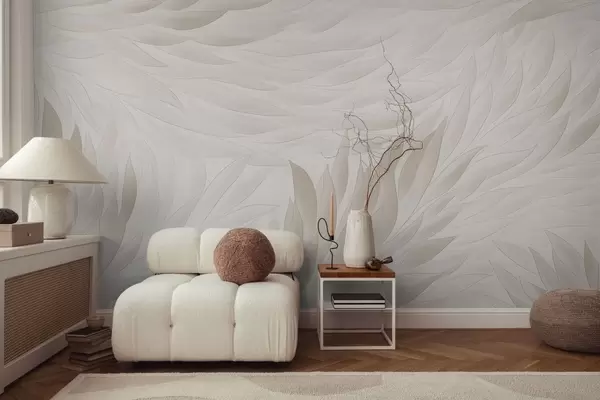 Fotobehang Golvende bladeren in zachte crèmekleuren N° w04610