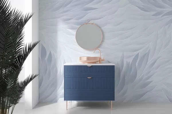 Fotobehang Golvende bladeren in lichtblauwe tinten N° w04610v1