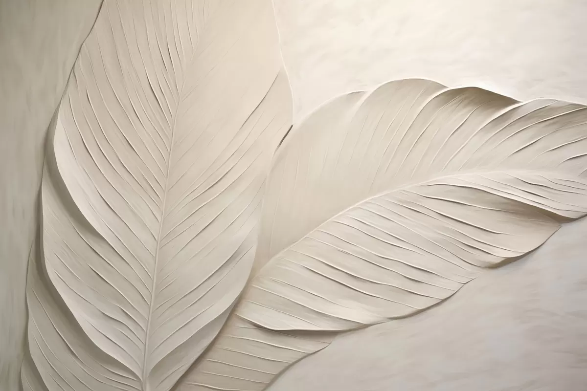 Fotobehang Beige bladeren in reliëf met zachte schaduwen N° w04614