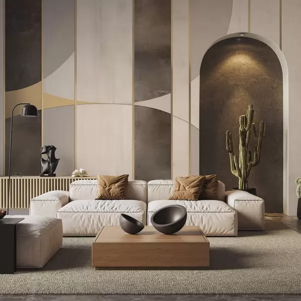 Fotobehang Geometrische panelen met bogen en champagneaccenten N° w04616