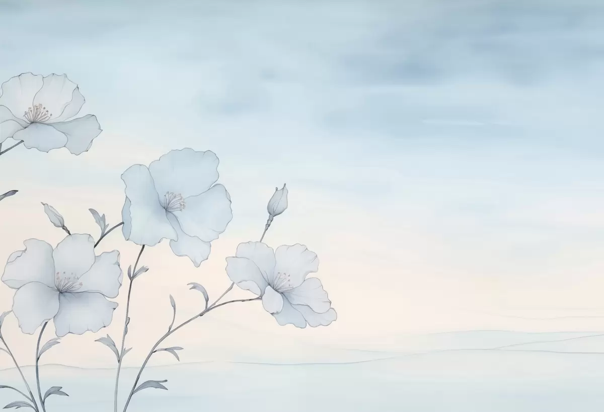 Fotobehang Delicate blauwe bloemen tegen een luchtige hemel N° w04620