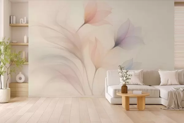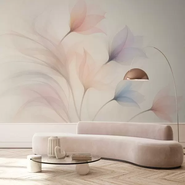Fotobehang delicate semi-transparante tulpen op een beige achtergrond N° w04754