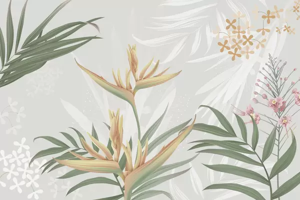Fotobehang Exotische Strelitzia-bloemen in gebladerte N° w04783