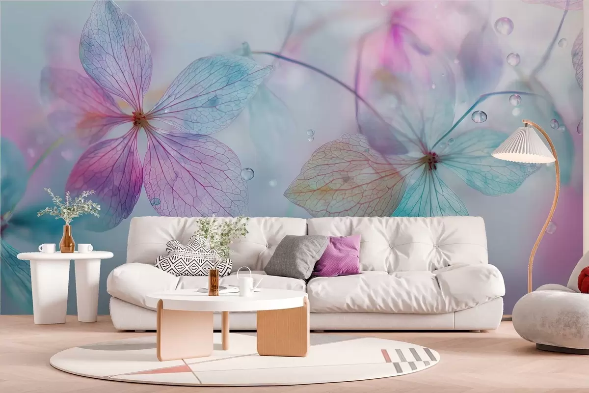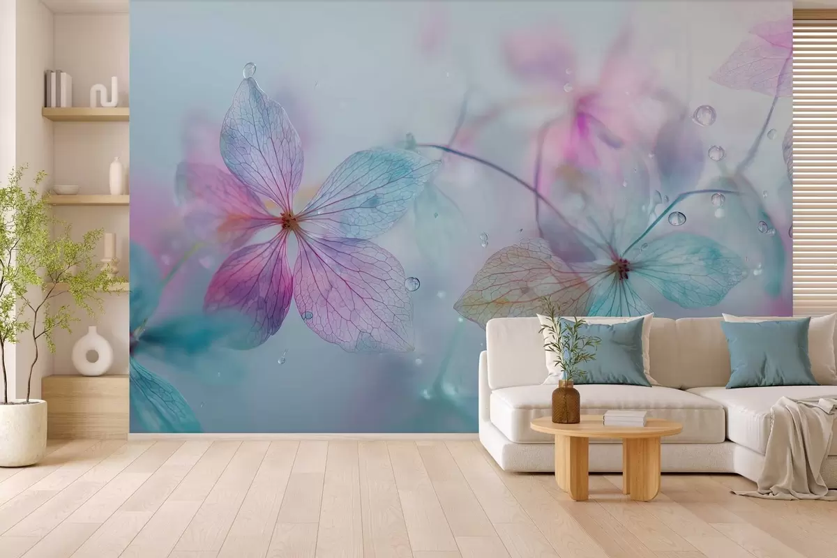 Fotobehang delicate bloemen met nerven onder water N° w04809