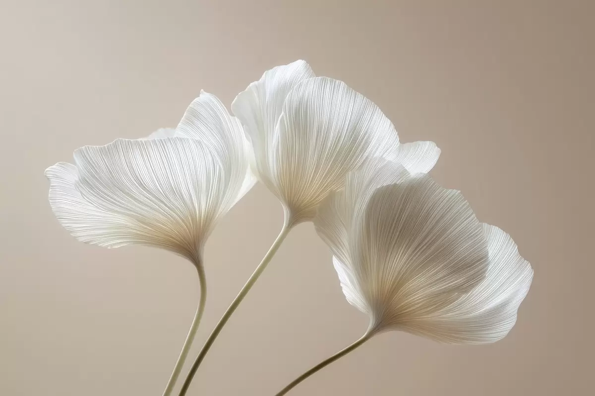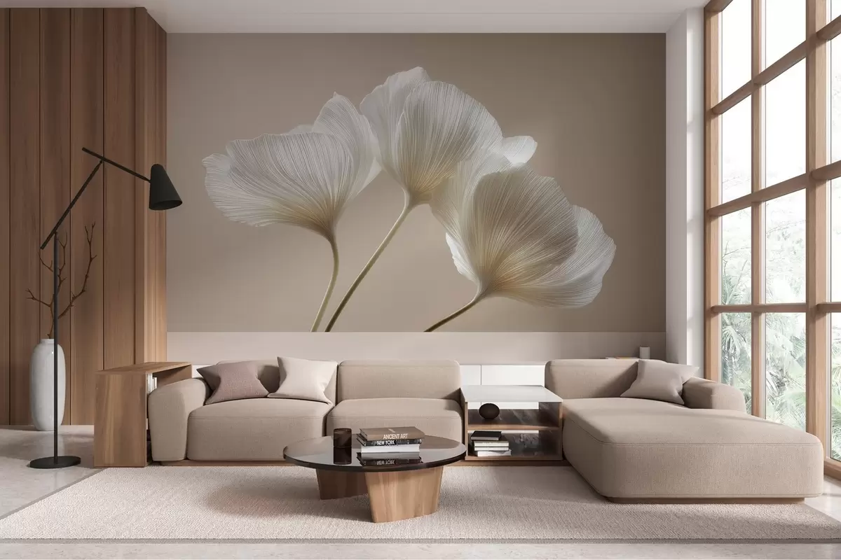 Fotobehang drie delicate bloemen op een beige achtergrond N° w04810