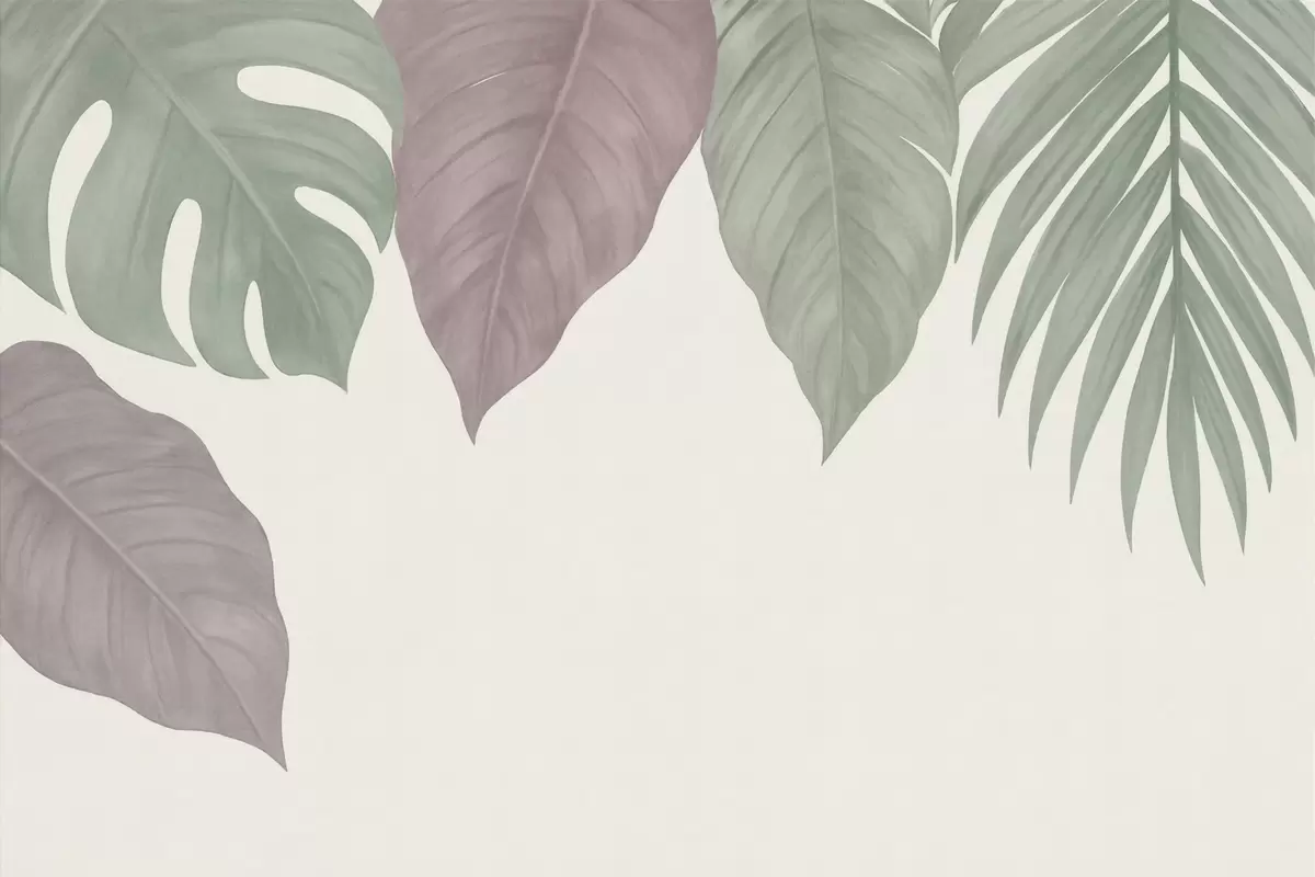 Fotobehang grote tropische bladeren in een eenvoudige stijl, van bovenaf gezien N° w04819