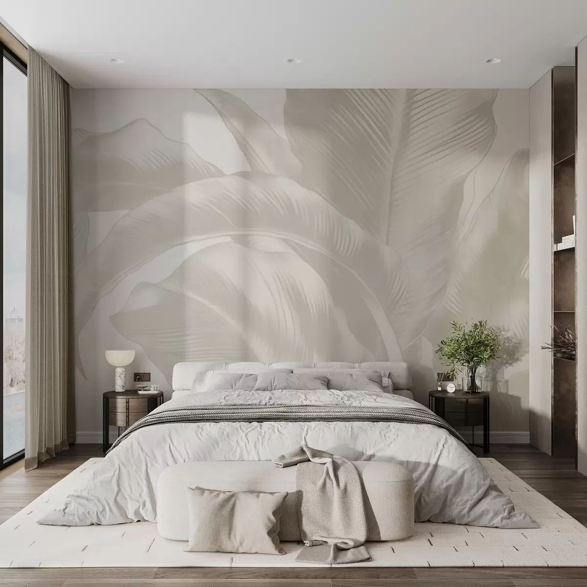 Fotobehang Lange bladeren, bananenbladeren met een versleten effect N° w04827