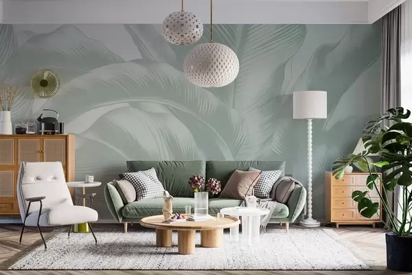 Fotobehang Lange bladeren, bananenbladeren met een versleten effect N° w04827v3