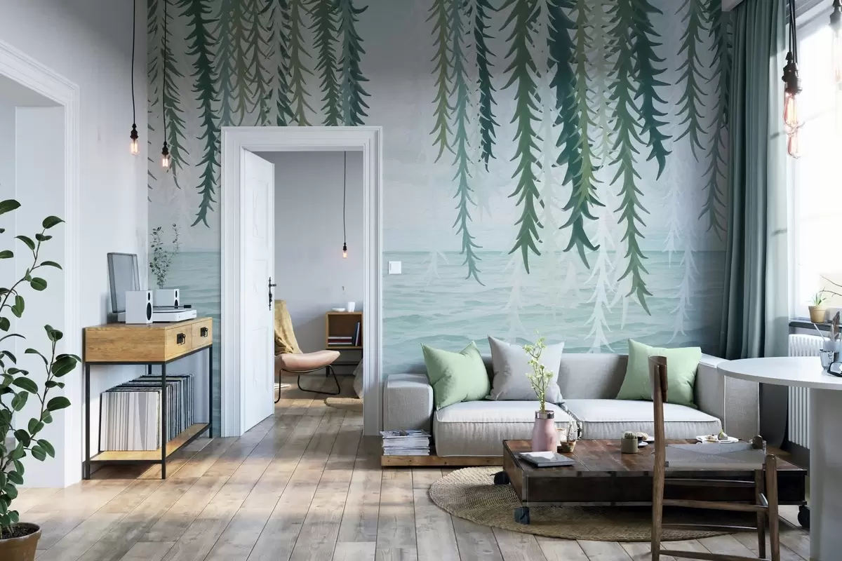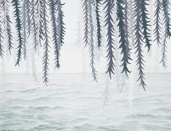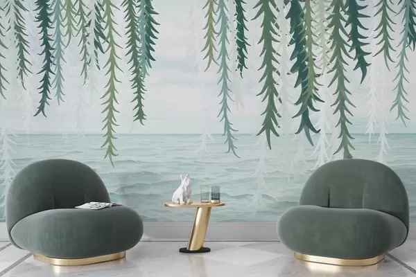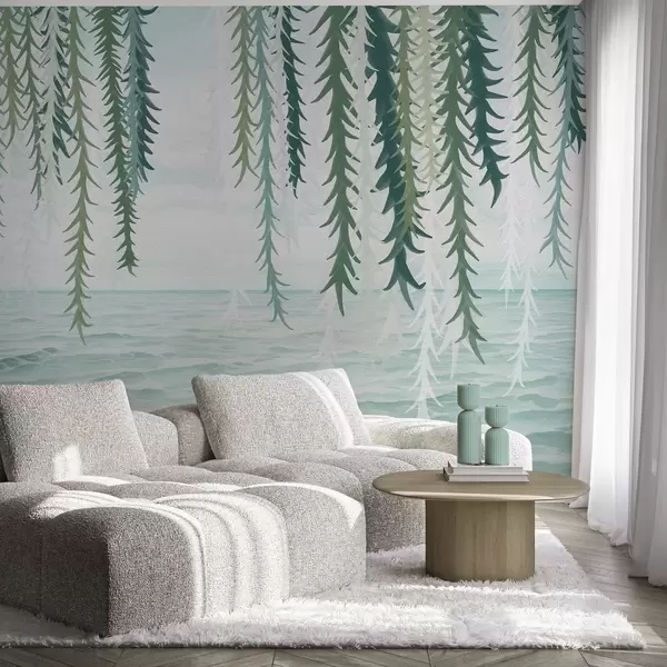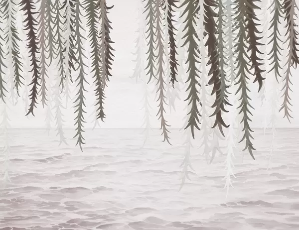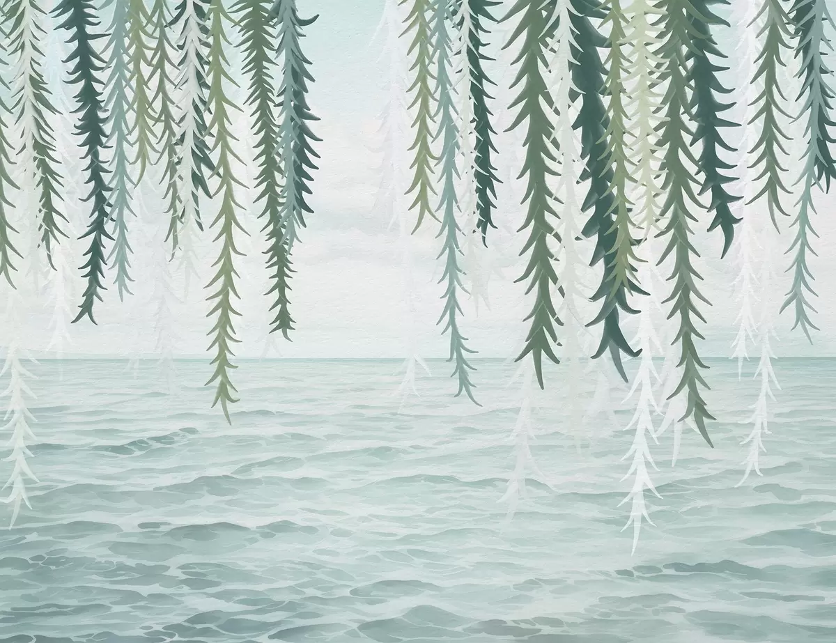 Fotobehang Delicate wijnstokken hangend boven water in aquarelstijl N° w04830