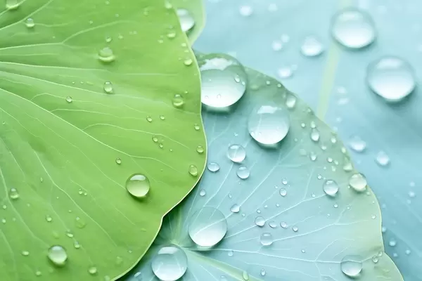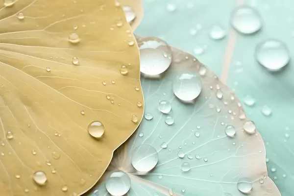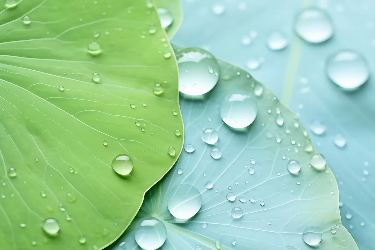 Fotobehang Waterdruppels op bladeren macro aquarel N° w04838