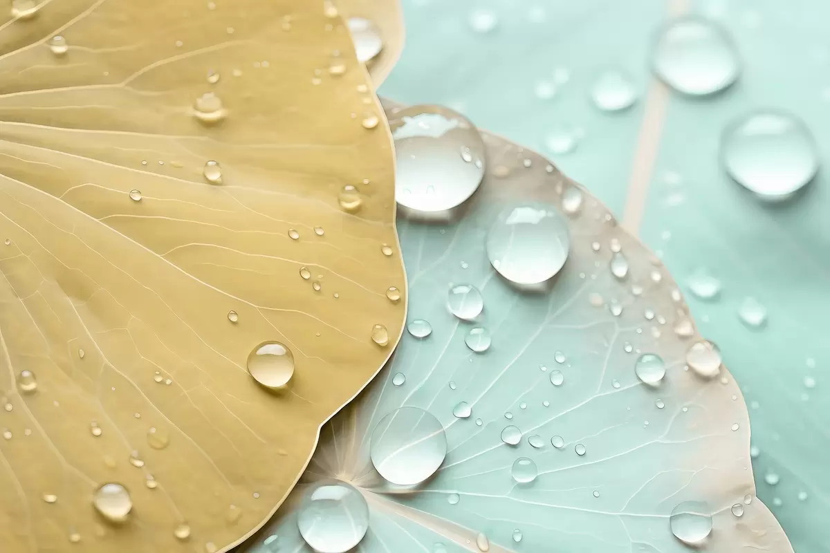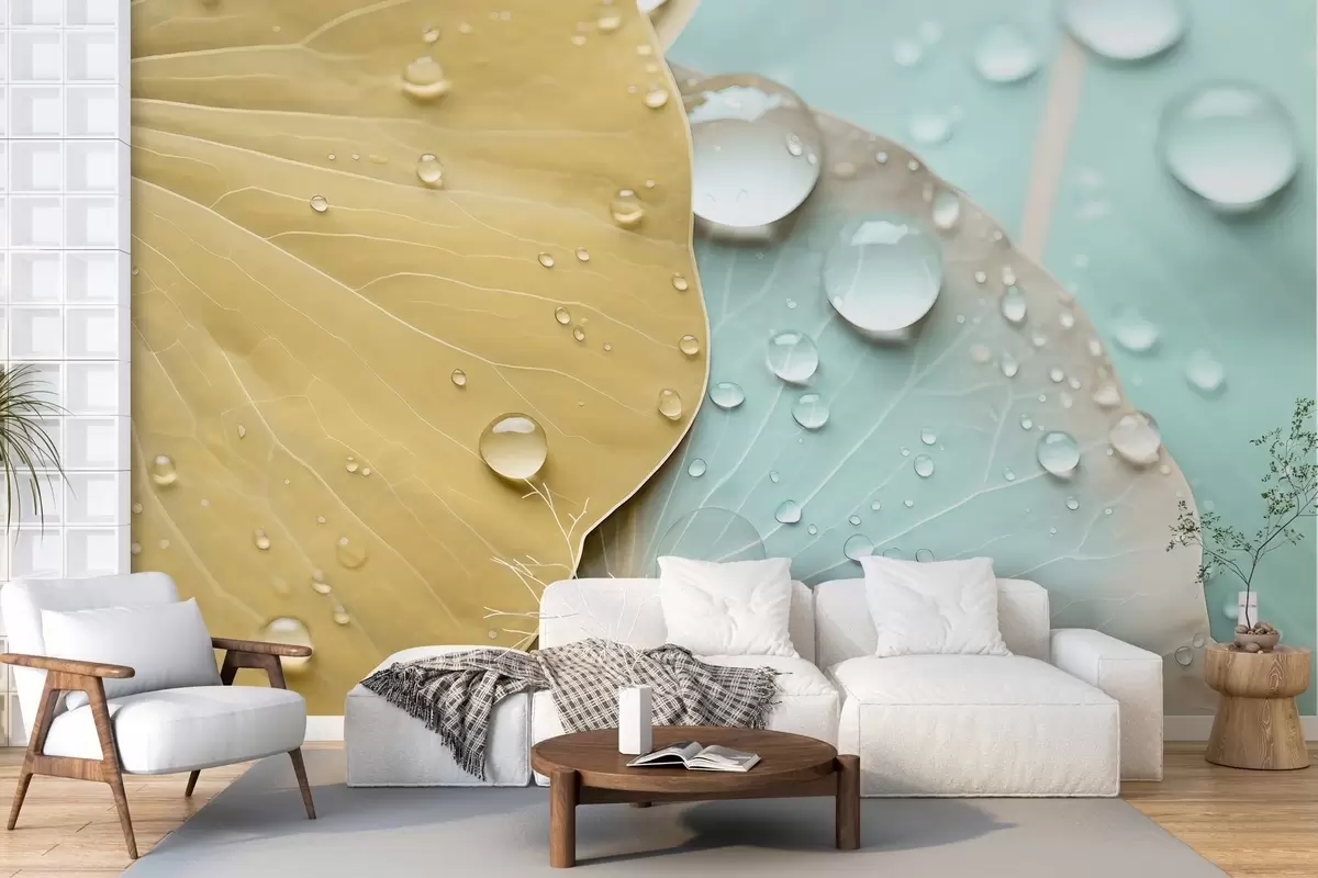 Fotobehang Waterdruppels op bladeren macro aquarel N° w04838v1