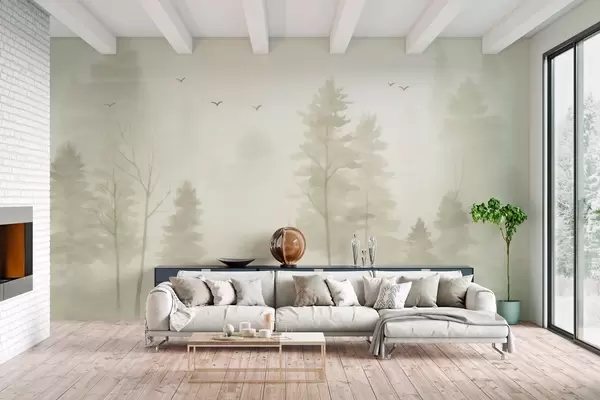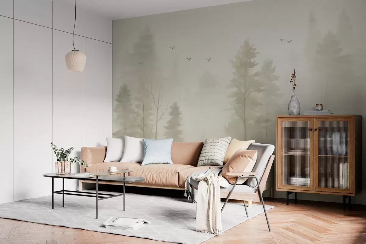 Fotobehang luchtbos in aquarelstijl in beigetinten N° w04872