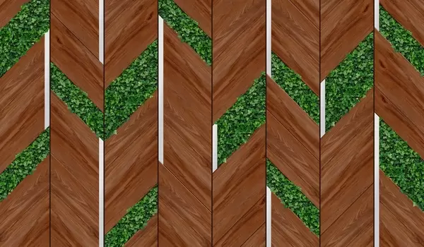 Fotobehang imitatie van lichte houten panelen met planteninserts N° w04875