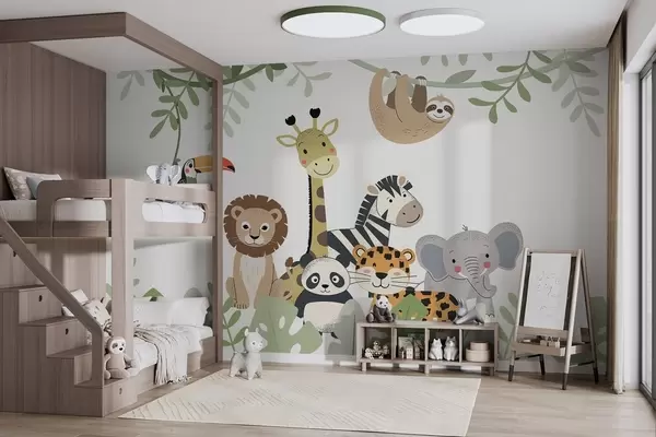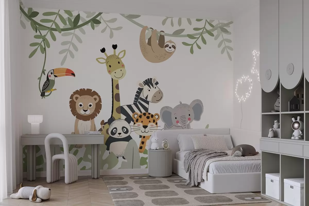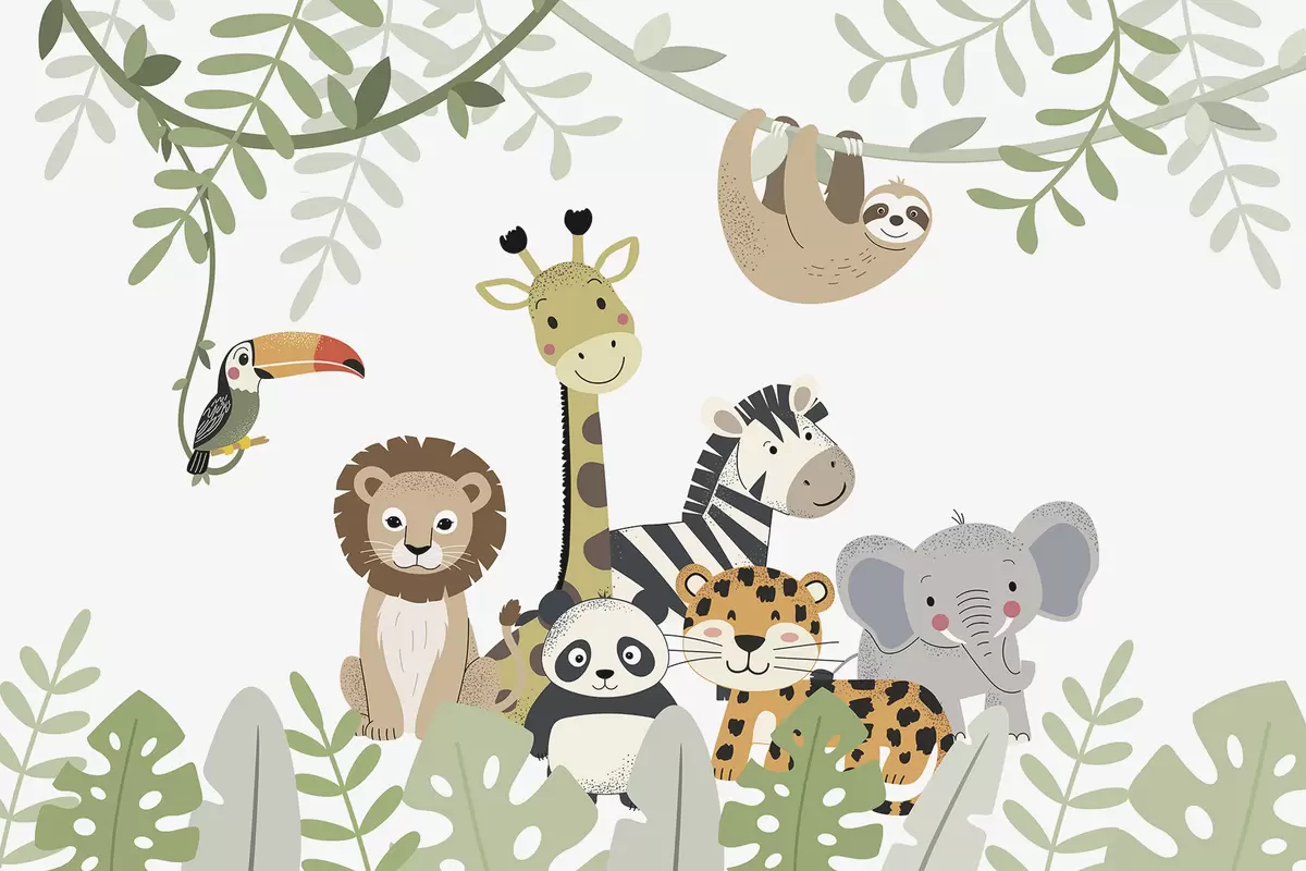 Fotobehang Sprookjesachtige jungle met dieren N° w04905
