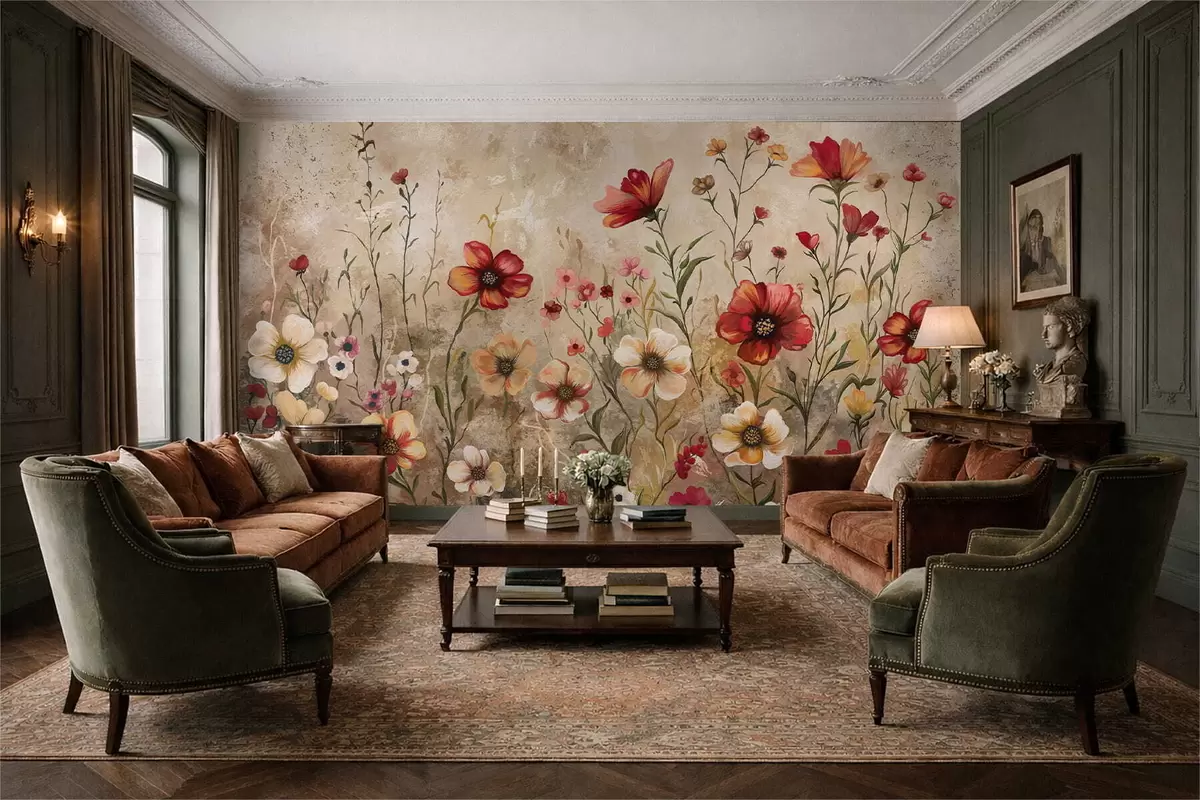 Fotobehang Bloemstuk met gestructureerde achtergrond in warme tinten N° w05016