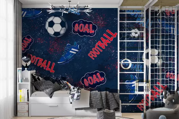 Fotobehang Herhalend patroon met ballen, schoenplaatjes en tekstelementen N° w05037v2