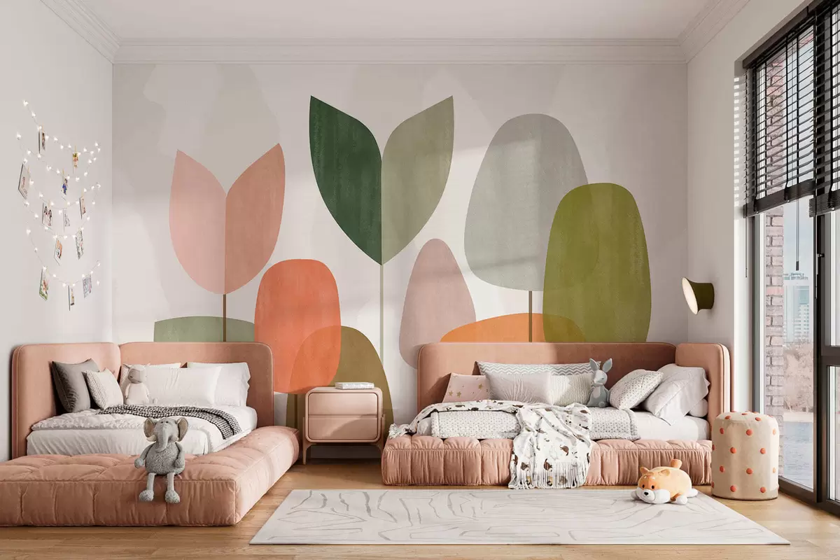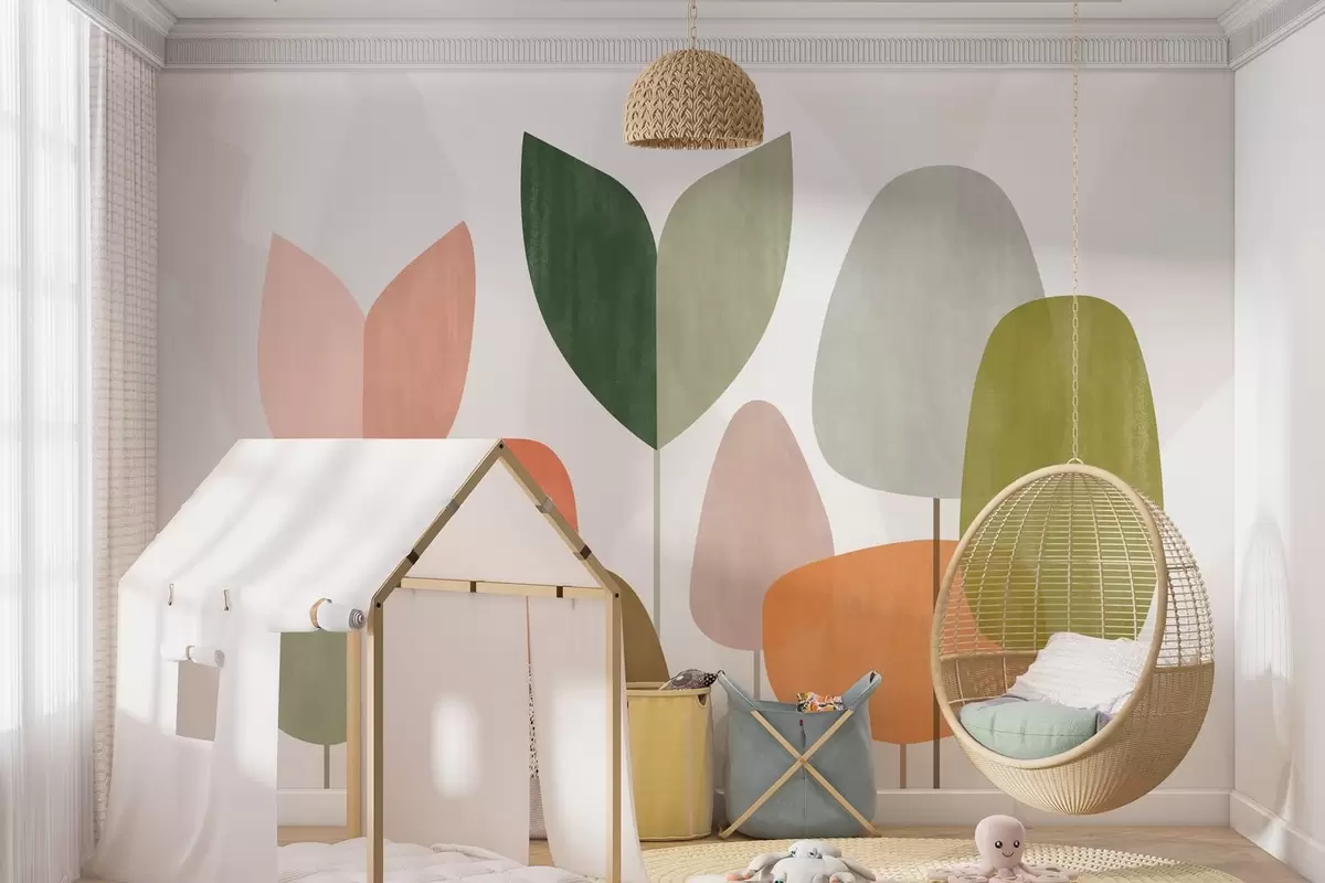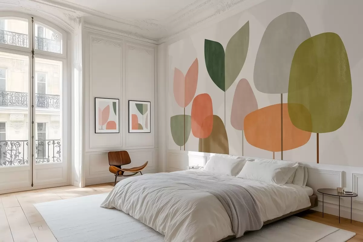 Fotobehang abstracte bomen in een naïeve stijl N° w05059
